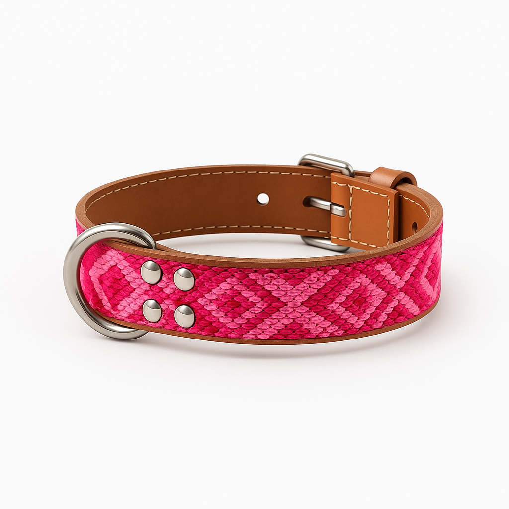 Ručně vyráběný psí obojek v barvách růžové a bílé*